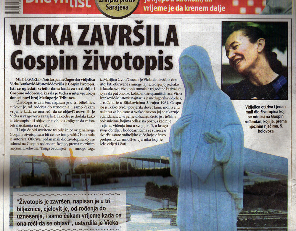 Mensaje extraordinario dado por la Virgen al vidente Iván el día 17 de agosto de 2012 en el Monte Podbro en Medjugorje.